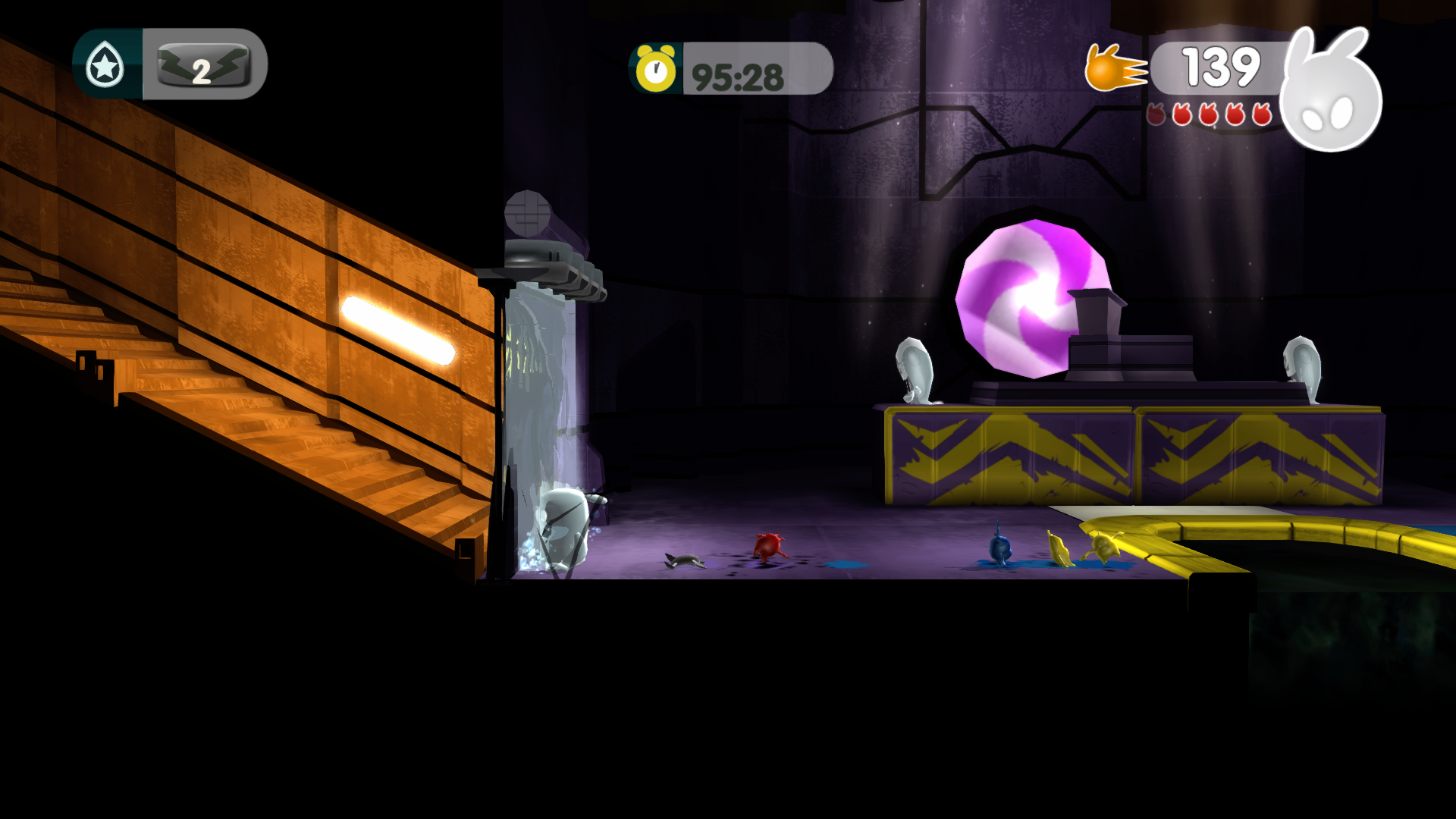 L’avantage de remplir ces missions secondaires est de gagner des points d’expérience que vous pouvez librement dépenser pour améliorer votre blob : nombre de vie, quantité de peinture, coup d’une charge…