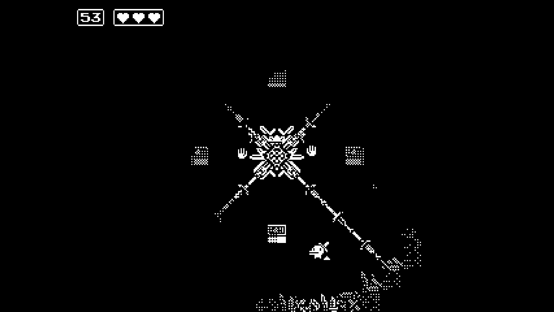 Normalement une épée dans un jeu c’est… cool ! Oui mais pas dans Minit ! Dès l’instant où vous ramasserez cette épée tout s’accélère et surtout chaque seconde devient comptée… En effet, l’épée est maudite et vous avez 60 secondes pour lever la malédiction et résoudre le problème de l’usine (c’est quoi cette usine? on l’apprendra dans le jeu mais il s’agit d’un test sans spoiler). Passé ce délai ? Vous mourrez !