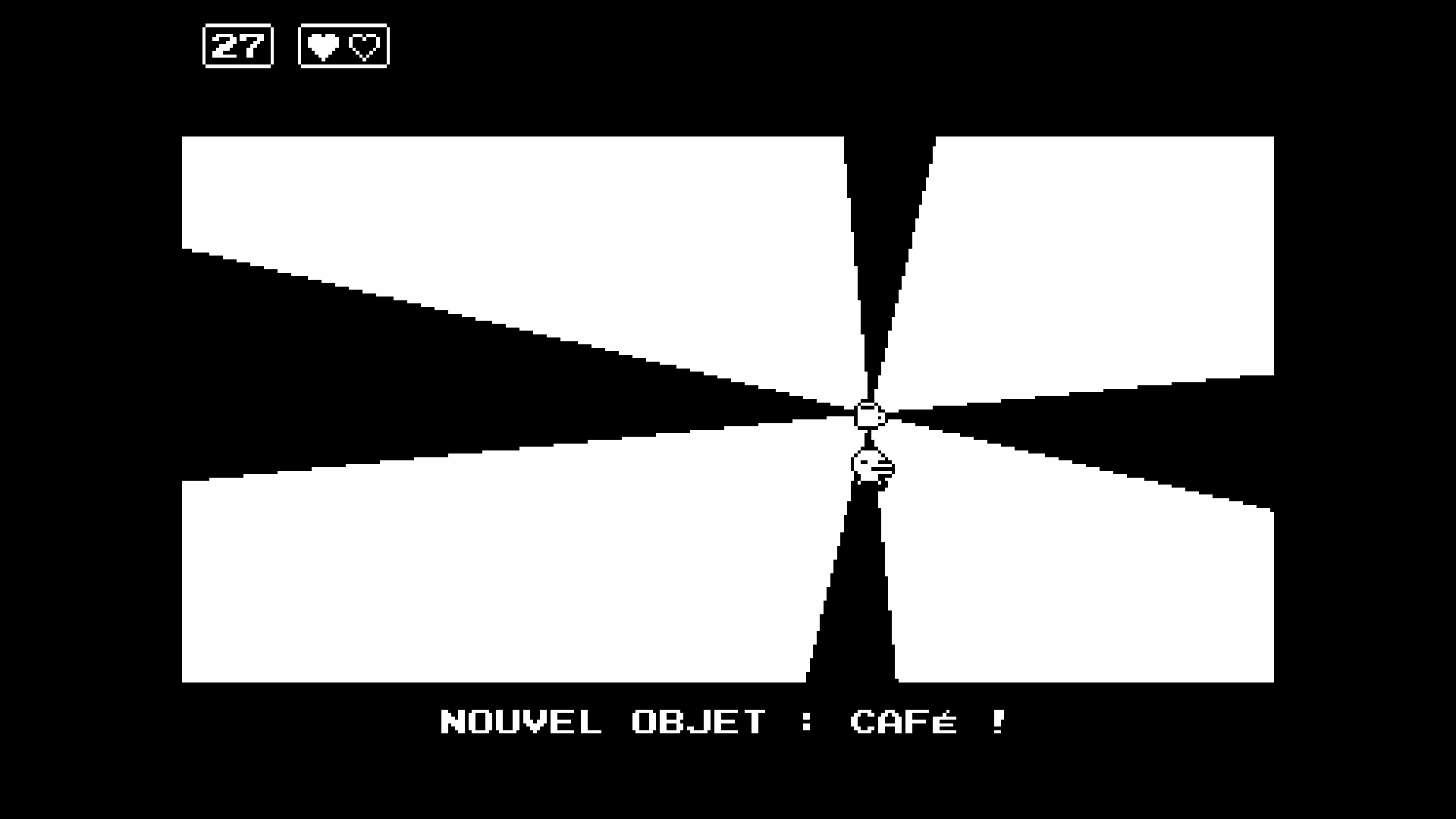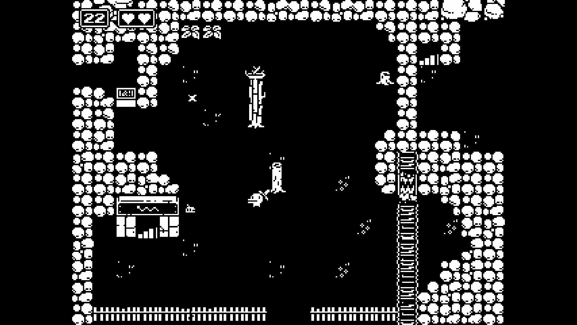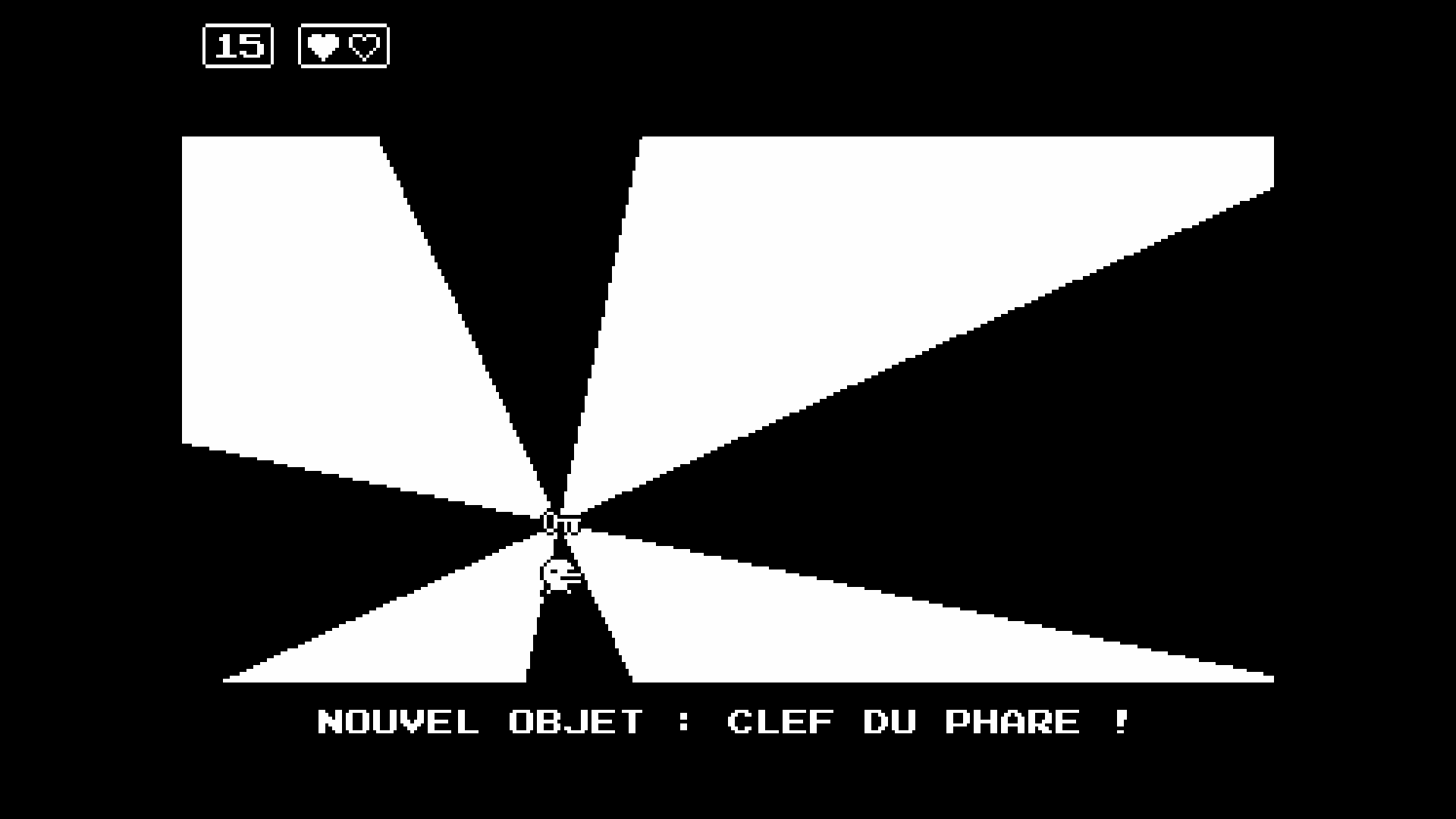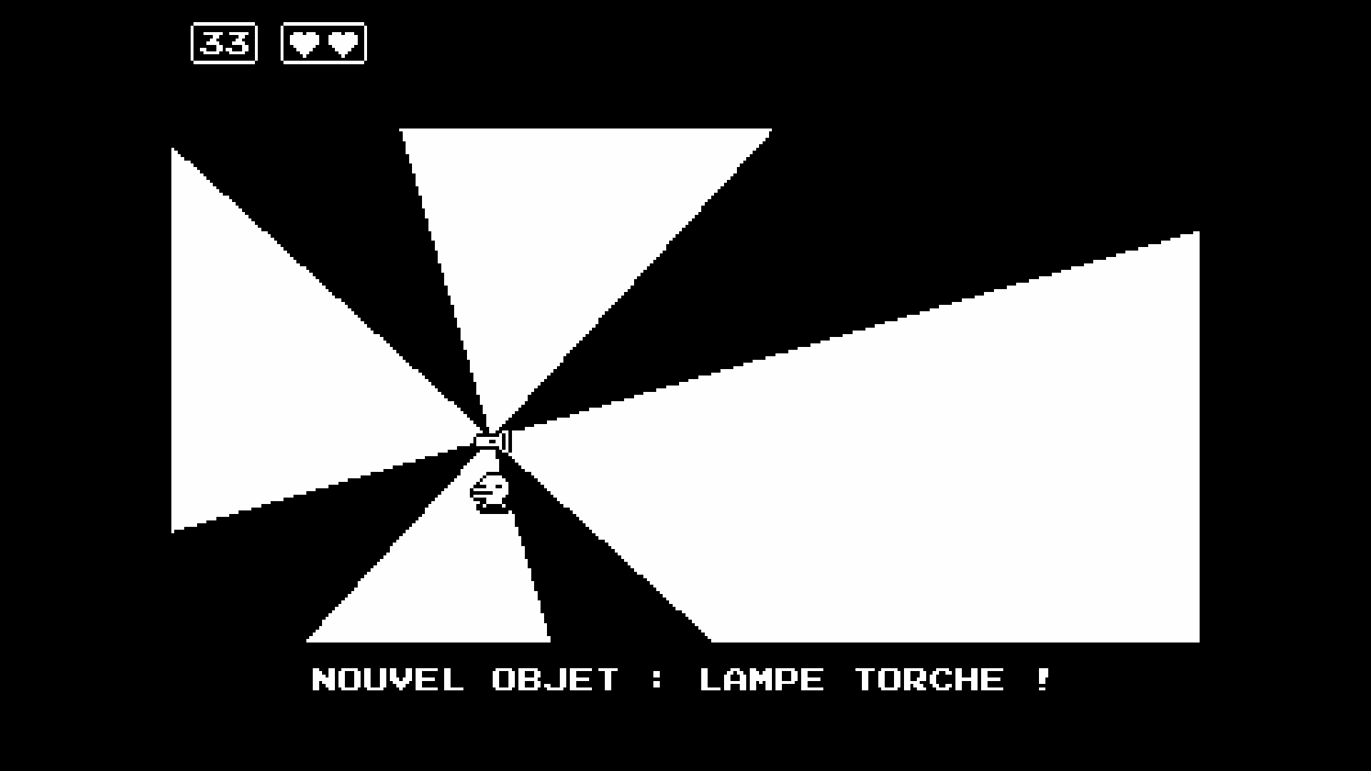 Graphiquement, le jeu est, là encore, minimaliste (et d’ailleurs le Piwi a eu le temps de le dire en intro…). On retrouve des graphismes qui sentent bon la Nintendo Nes ou encore la Game-Boy et, à ce titre, il faut noter que le jeu est intégralement en noir et blanc (encore une fois cet angle minimaliste choisi par les développeurs…). Certaines zones peuvent paraître désespérément vides de décors mais le Piwi trouve que cela sert parfaitement le gameplay du jeu. En effet toutes les 60 secondes c’est quasiment retour à la cas départ imaginez donc des décors fournis qui auraient obligé les joueurs à fouiller chaque pixel… Cela aurait abouti à un jeu rébarbatif et inintéressant et le Piwi pense que les développeurs ont fait le bon choix d’épurer leur jeu pour se concentrer sur l’essentiel : le concept et la narration.