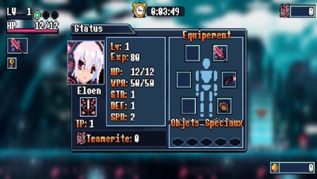 Au cours de votre aventure, vous pourrez mettre la main sur des équipements et armes boostant vos capacités se rendant ainsi indispensables. Votre personnage gagnera également en niveau vous débloquant un point de capacité permettant d’améliorer votre force, votre défense, votre capacité en munition ou encore votre santé (qui ne se régénère pas entre chaque niveau à la manière d’un Rogue Legacy…).