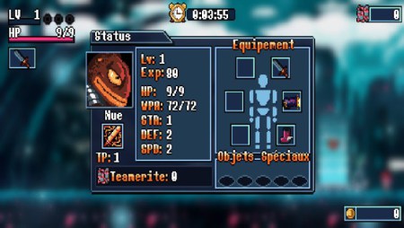 Chaque personnage bénéficie d’une épée et d’un flingue aux munitions très limitées. A ce sujet, bug ou erreur de programmation, le flingue n’est pas utilisable face au boss ce qui rend Nue inutile car sa force est sa grande capacité en munition… A priori cela ne sera pas corrigé car le problème était déjà présent sur les versions Steam et PS Vita.