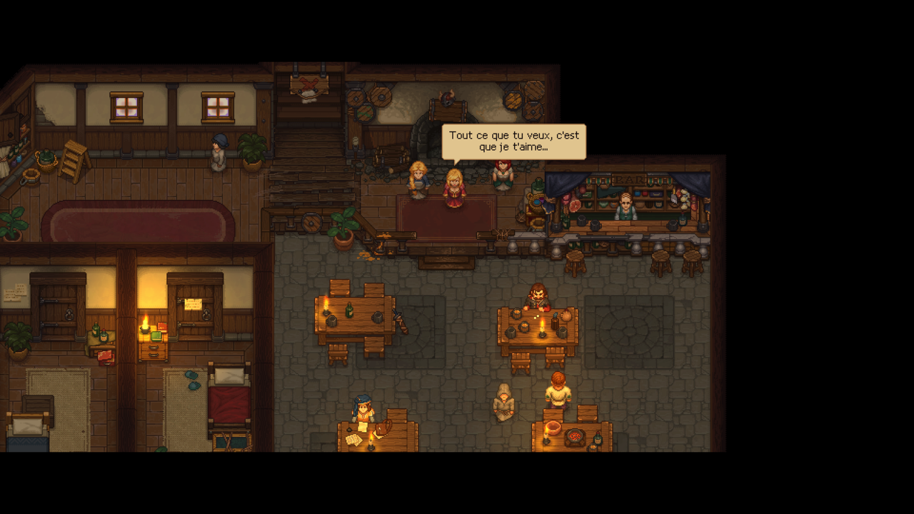 Les points de compétence, les technologies, les constructions, les quêtes : rien pas un mot, même lors de votre première balade en ville les marchands ne sont pas indiqués par un panneau (pourquoi ? cela est si simple un panneau avec un symbole c’est pas compliqué !!!). Alors c’est vrai que j’y vais un peu fort et que je vends pas forcément bien le jeu (ce qui est pas mon boulot moi je dois juste le tester et donner mon humble avis qui vaut ce qui vaut même si c’est pas grand chose). Mais oui le jeu est vraiment prenant et c’est d’ailleurs pour ça que je m’y suis accroché (et aussi parce que je n’aime pas rester en situation d’échec…). Parce que Graveyard Keeper n’est pas qu’un simple jeu de gestion et il vous proposera de multiples activités…