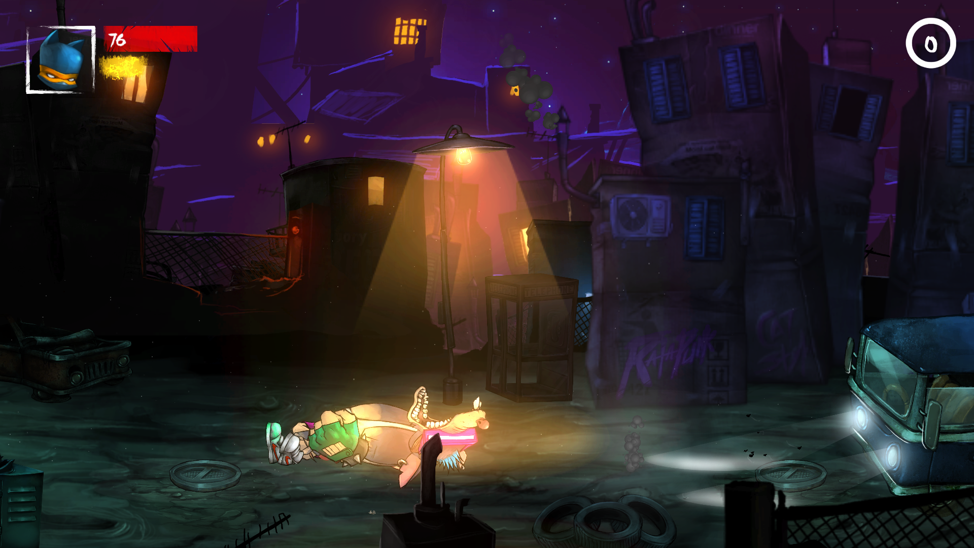 Le titre peut paraître négatif mais c’est tout le contraire. Graphiquement le jeu a sa patte (de chat…) et, est bien réalisé. Les 4 environnements qui nous sont proposés sont variés et les ennemis correspondent à l’environnements et ne sont pas réutilisés dans les niveaux suivants avec des sprites de couleurs différents. Pour avoir éviter cet écueil il faut remercier les développeurs. Les graphismes façon BD sont bien foutus avec une fausse 3D précalculeé réussie. En terme d’affichage, aucun bug particulier à signaler y compris en mode arène ou pourtant un grand nombre d’ennemis est affiché à l’écran.