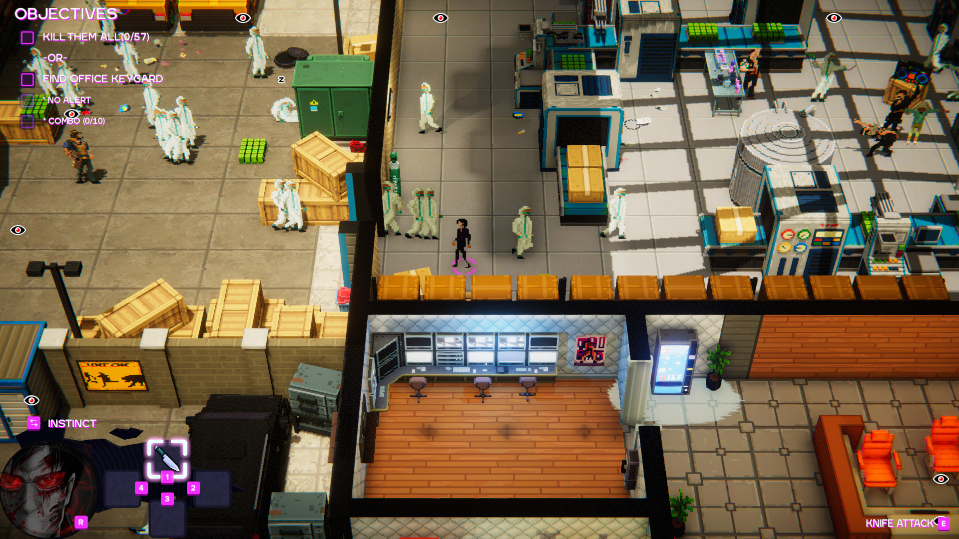 Le jeu est un jeu de stratégie furtive dans lequel vous devez vous venger de votre employeur qui vous a viré et quoi de mieux qu’un couteau en pareil cas ?